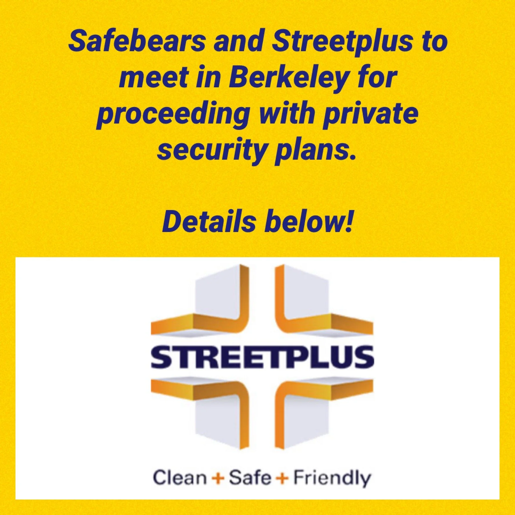 SafeBears & Streetplus to Meet in Berkeley to Finalize Our Private Security Pilot