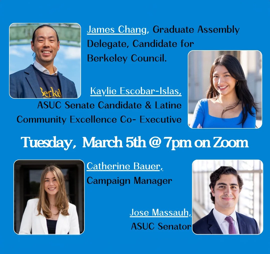 Please invite your Bear to join you for this special event! Besides getting their voice into the conversation, we’ll be sharing information about how students can register to vote in Berkeley’s upcoming elections.