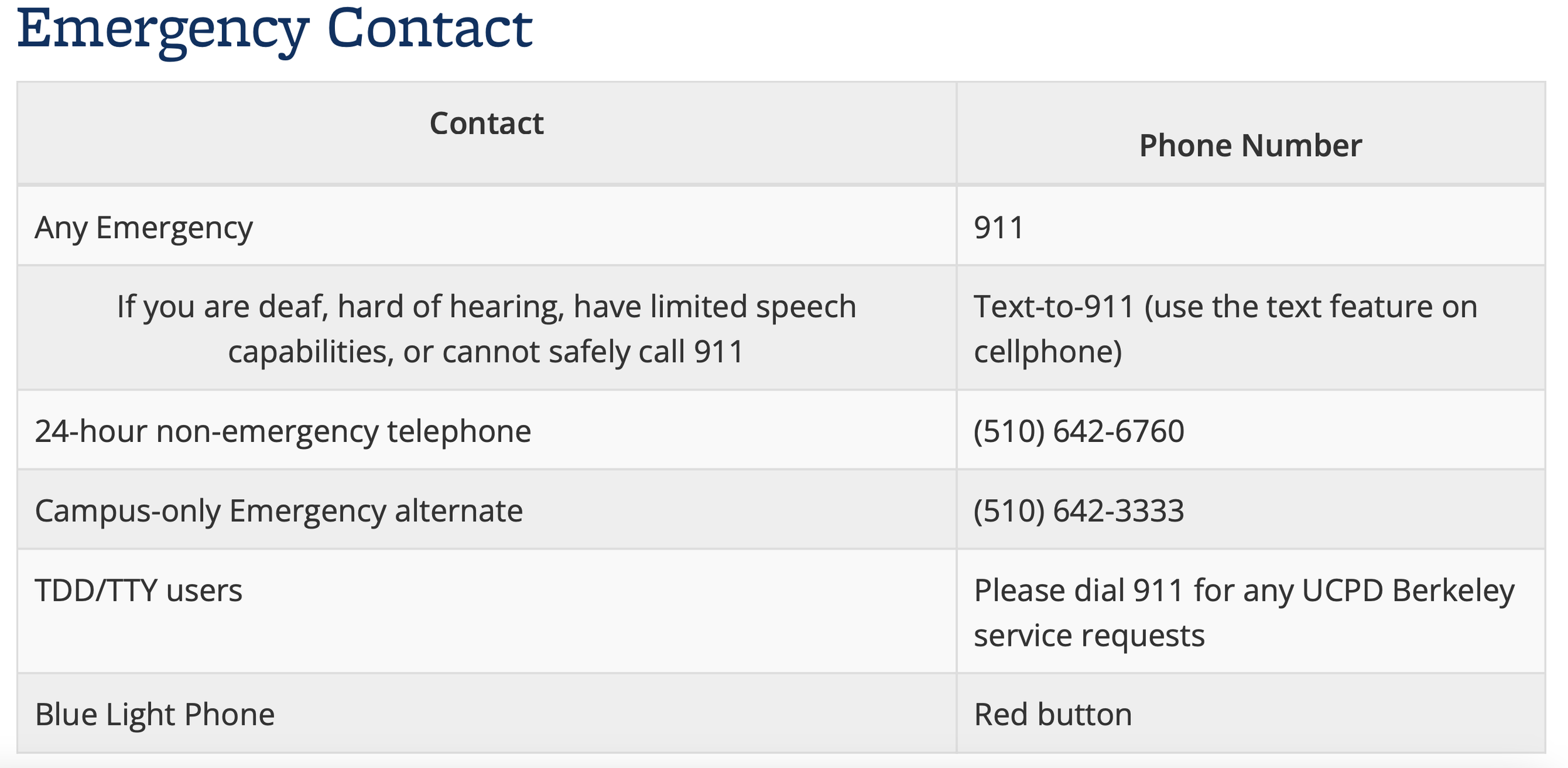 While the UCPD campus-only emergency alternate number (510-642-3333) can be a good option in certain situations, students should understand THEY CAN ALWAYS DIAL 911 IN AN EMERGENCY, EVEN ON CAMPUS!