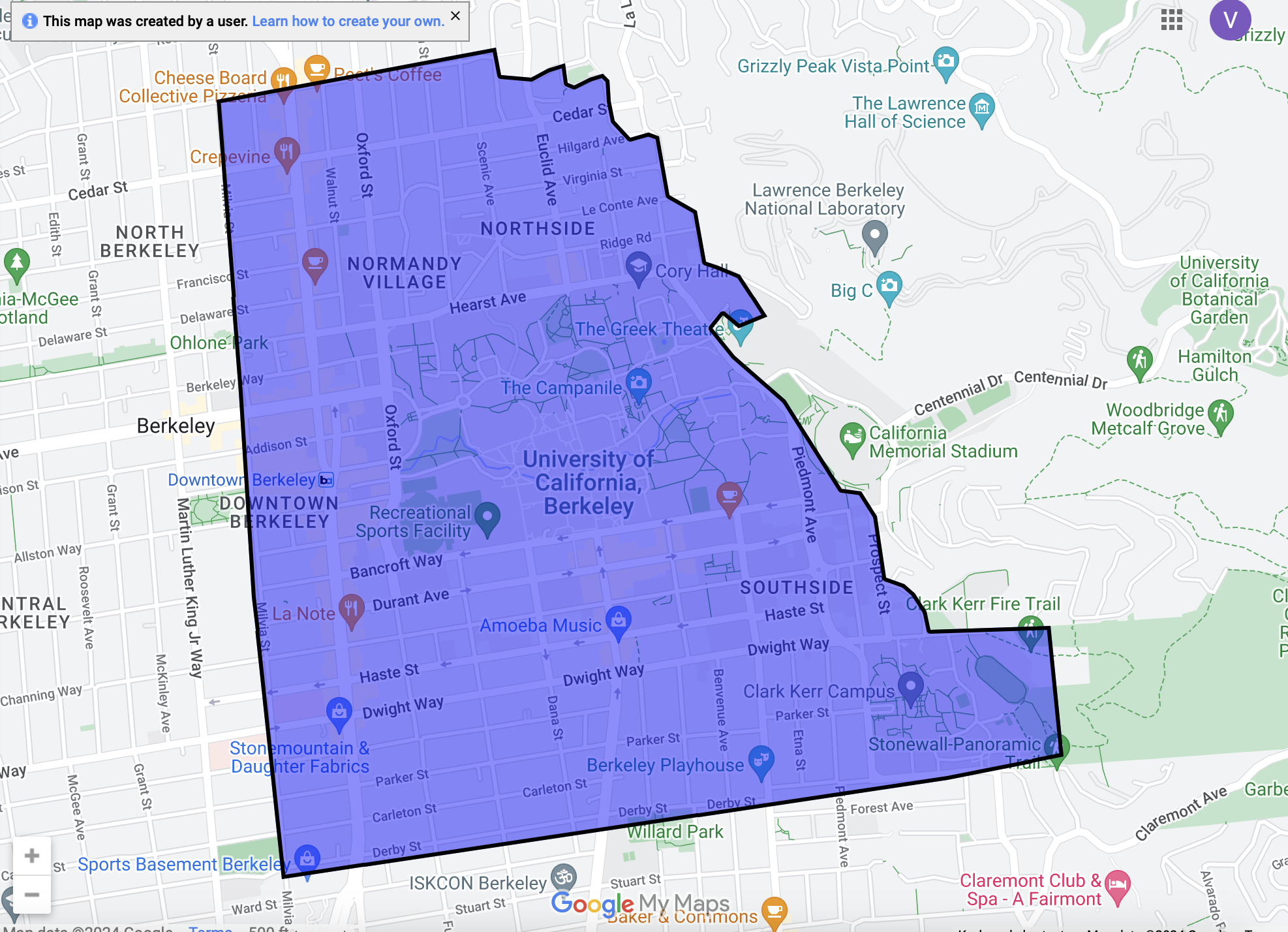 The downtown Golden Bear Center at 1995 University Ave is NOT within SafeWalk boundaries.