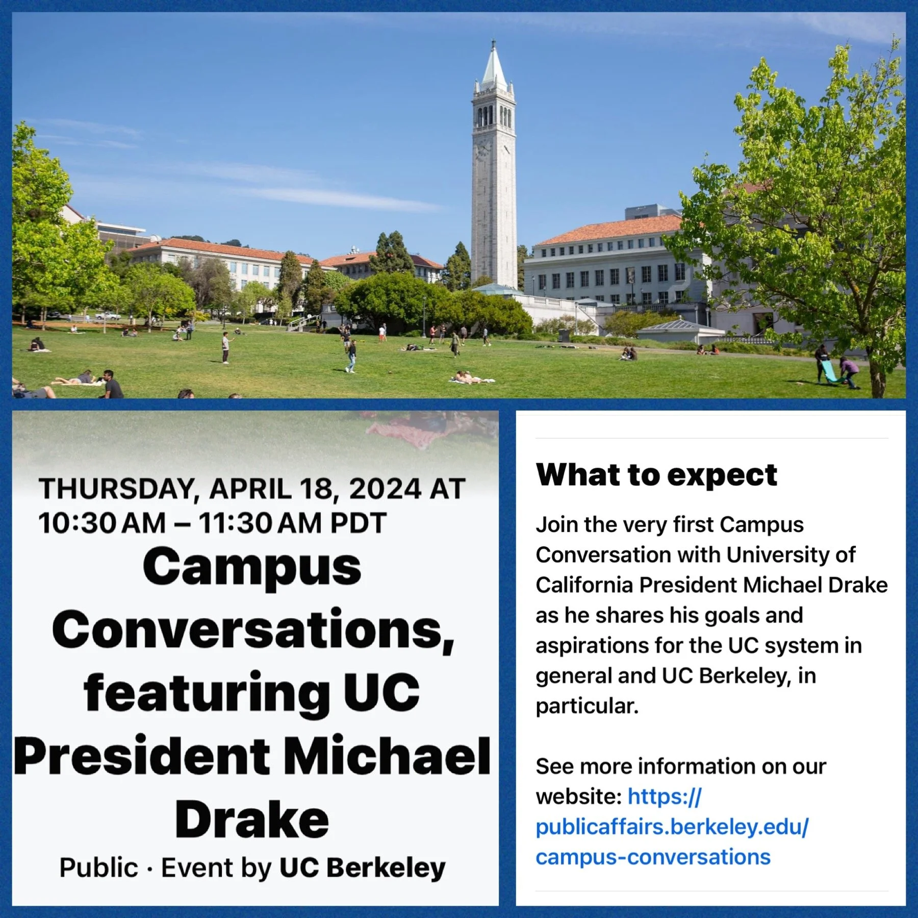 UC President Michael Drake downplayed crime concerns at Cal in his remarks during the April ‘24 Campus Conversation. Let’s take a look at the facts.